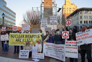 We did a rally as part of the international day of action to celebrate the Entry into Force of the UN Treaty for the Prohibition of Nuclear Weapons – Raytheon has over a billion dollars of contracts in the nuclear weapons industry.